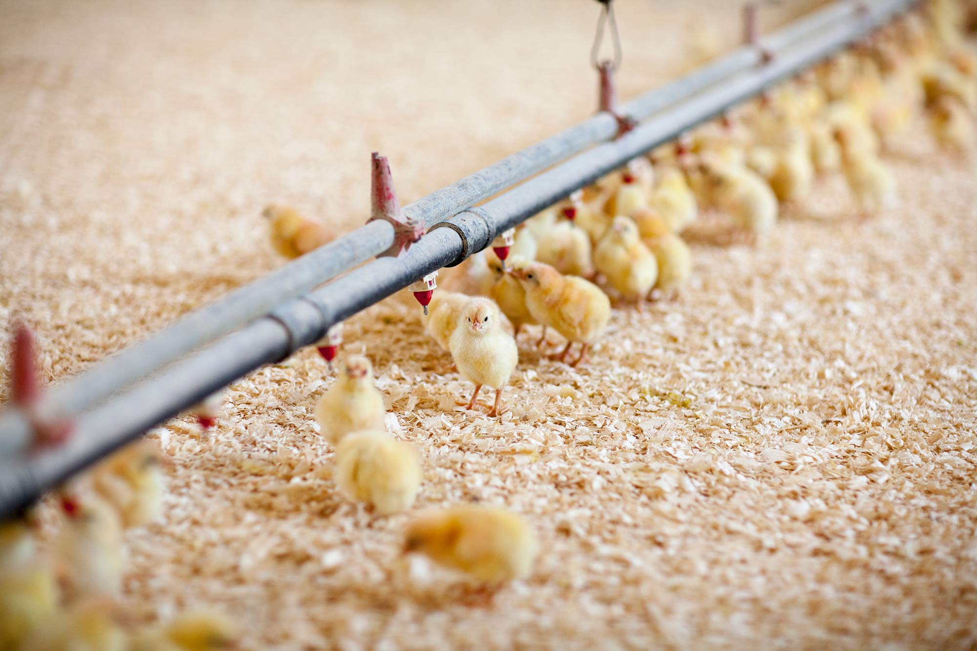 En début de croissance, de la première à la troisième semaine, la nourriture fournie aux volailles est riche en protéines afin de favoriser leur développement musculaire. La moulée est composée principalement de maïs à 65%, de soya à 30% et de blé à 5%. Les proportions varient selon la croissance # 1 (de trois à six semaines), la croissance # 2 (de six à neuf semaines) et pour la finition (de neuf à douze semaines).